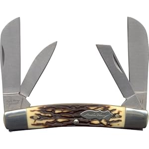 Product Description : UNCLE HENRY MASTER 4 BLADE 3.5 CLOSEDName: Master Blade Steel: Stainless Handle Material: Staglon Blade Types: 2 Sheep Foot, Coping, Pen Weight: 2.6 oz Overall Length: 5.8 (14.7 cm) Handle Length: 3.5 (8.9 cm) Blade Length: 2.3 (5.8 cm)