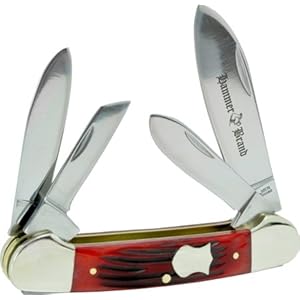Category: Sports & Outdoors Vendor: Hammer Canoe 4 Blade with Red Pick Handl. Handle: Red Pick Bone. Blade: 2.6" (6.6 cm). Closed: 3.7" (9.4 cm). Product Description : Steel: 400 Series Stainless.