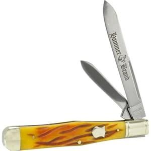 Category: Sports & Outdoors Vendor: Hammer Lg. Swell Center Jack Knife. Hammer Brand Large Swell Center Jack Knife 2 Blade With Amber Wormgrove Bone Handle. Handle Product Description : Steel: 400 Series Stainless.