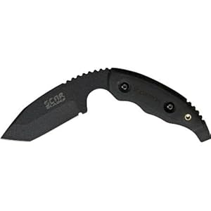 Product Description : SCAR Blades - Black Finish Scorpion Fixed Blade Knife with Black Handles. Model: SCAR071. 7 3/4" overall. 4 1/8" black finish curved design blade. Full tang. Black handle. Black sheath.