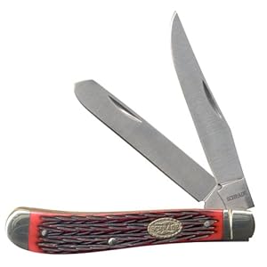 Product Description : GUNSTOCK TRAPPER 3 7/8 CLOSED 2 BLADE WITH RED PICK BONE HANDLEName: Gunstock Trapper Blade Steel: Stainless Handle Material: Red Pick Bone Blade Types: California Clip & Spey Weight: 3 oz Overall Length: 7 (17.8 cm) Handle Length: 4 (10.2 cm) Blade Length: 3 (7.6 cm)